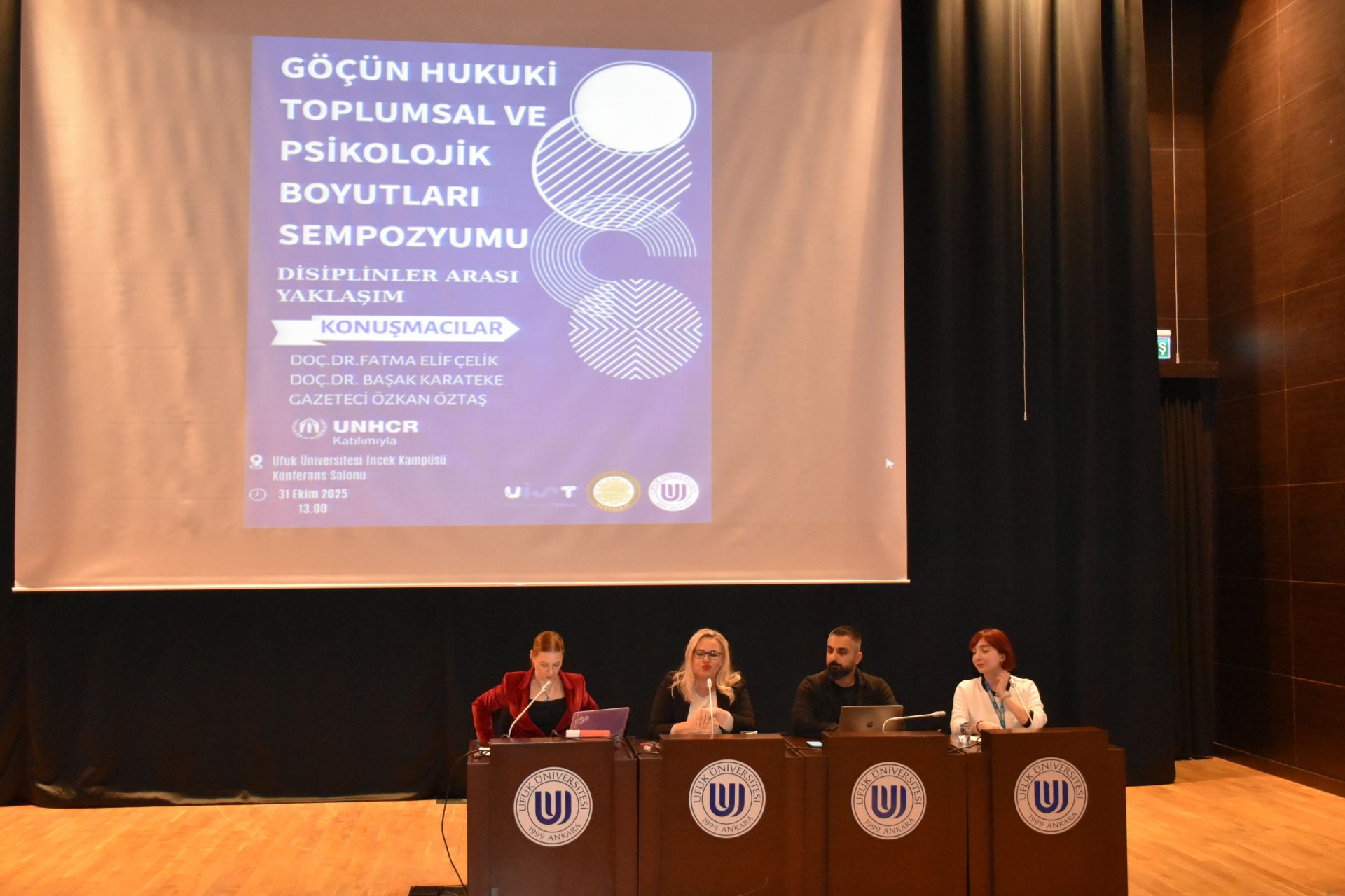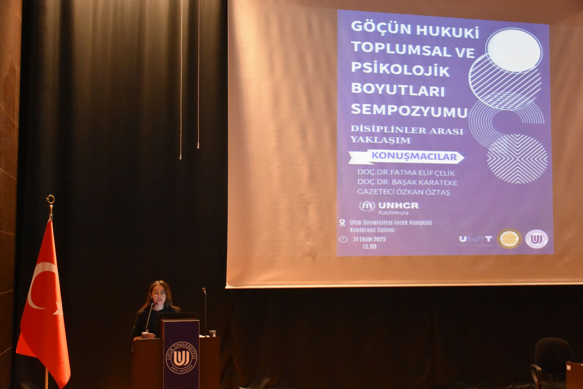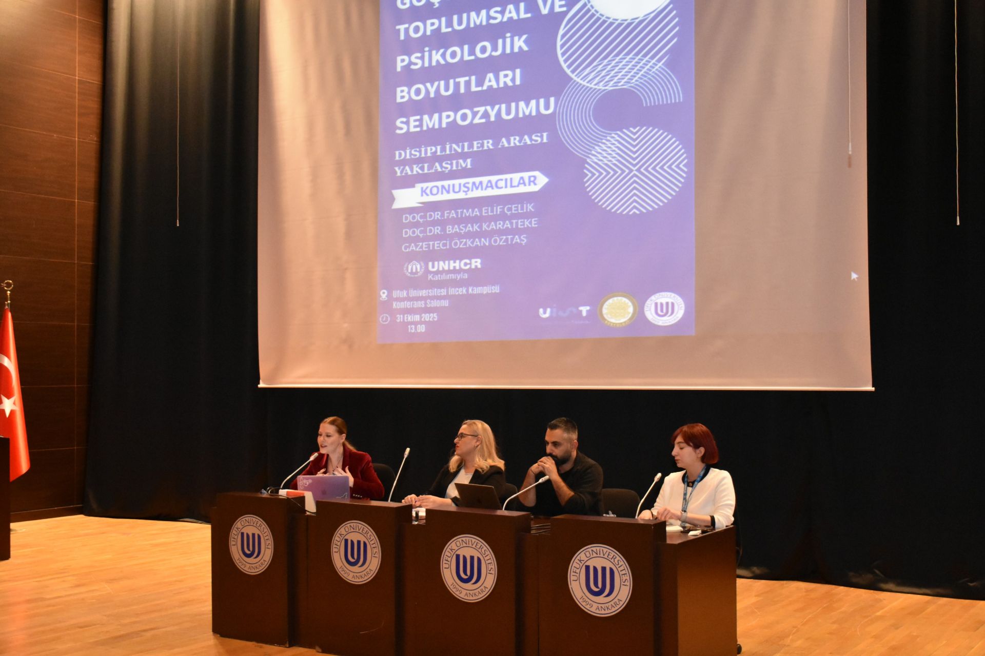 Ufuk Üniversitesi Psikoloji Bölümü ve İletişim ve Sanat Topluluğu iş birliğiyle düzenlenen “Göçün Hukuki, Toplumsal ve Psikolojik Boyutları: Disiplinler Arası Yaklaşım” sempozyumu, 31 Ekim 2025 tarihinde İncek Kampüsü Konferans Salonu’nda gerçekleştirildi.