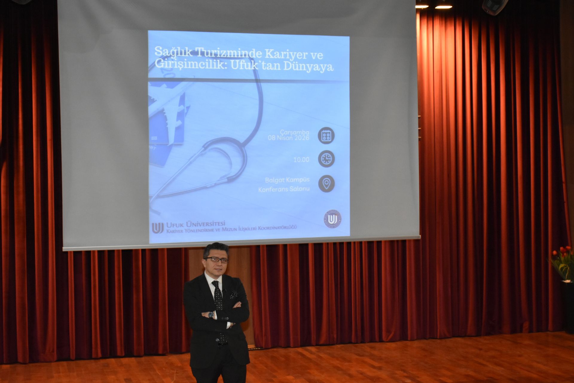 Ufuk Üniversitesi Kariyer Yönlendirme ve Mezun İlişkileri Koordinatörlüğü tarafından düzenlenen “Sağlık Turizminde Kariyer ve Girişimcilik: Ufuk’tan Dünyaya” başlıklı etkinlik, Balgat Kampüsü Konferans Salonu’nda gerçekleştirildi.🌍🩺