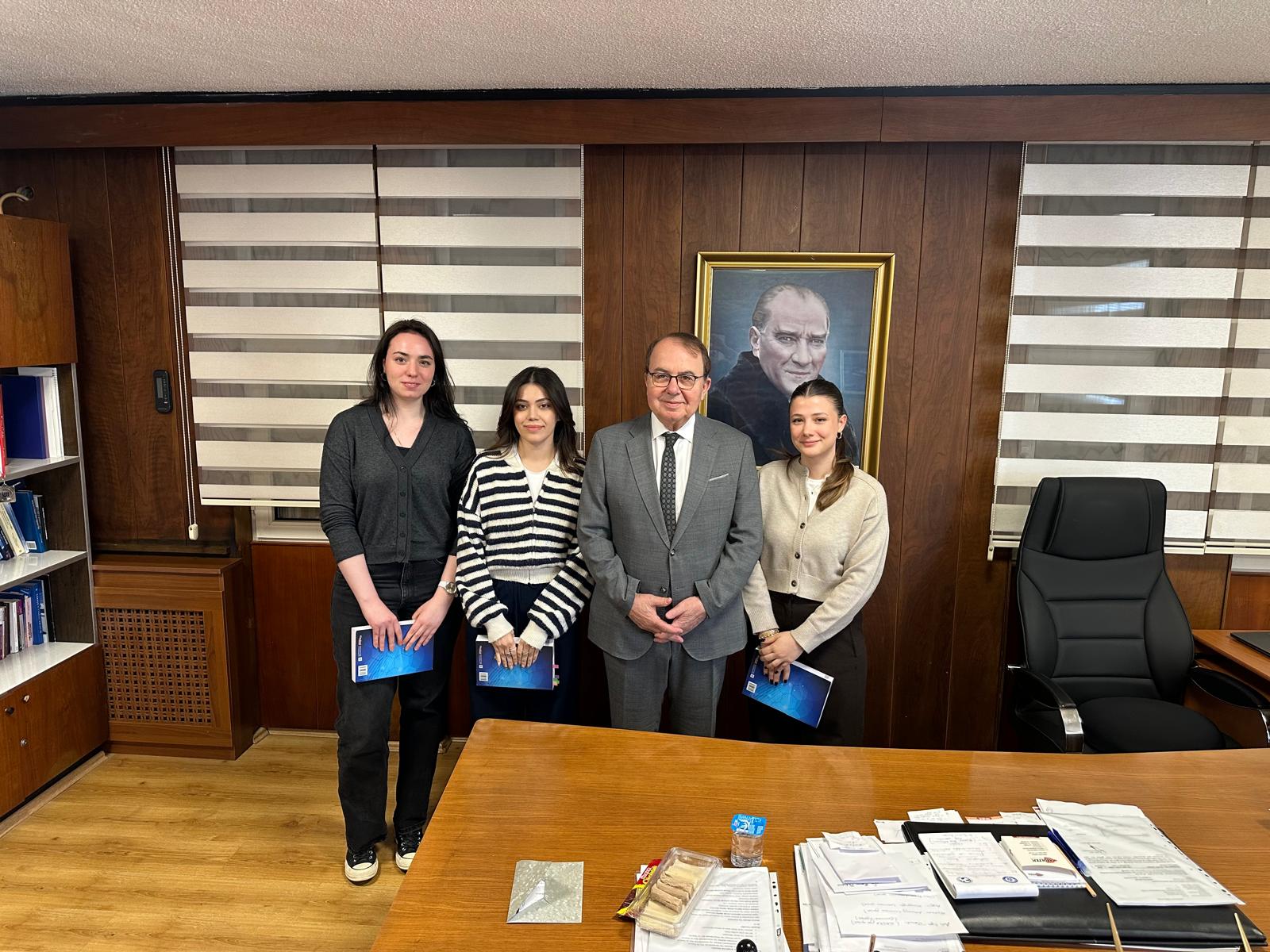 Üniversitemizin Tıp Fakültesi 5. sınıf öğrencileri, Kadın Hastalıkları ve Doğum alanının duayen hocalarından Prof. Dr. Recai Pabuçcu’yu ziyaret etti. Öğrenciler, eğitim hayatları boyunca en çok faydalandıkları kaynaklardan biri olan "Kadın Hastalıkları ve Doğum Ders Kitabı"nı hocamıza imzalatmak üzere bir araya geldi.