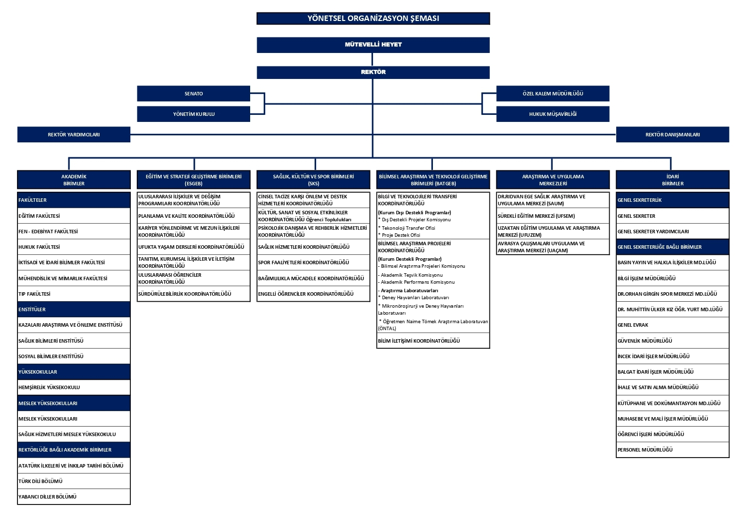 Rektörlüğe Bağlı Akademik Bölümler