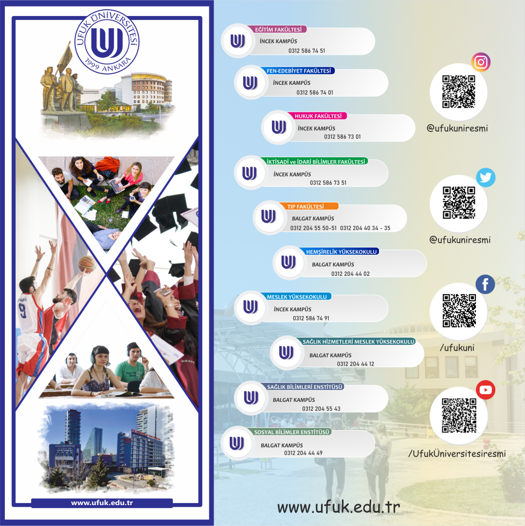 İncek KampüsAhlatlıbel, İncek Şht. Savcı Mehmet Selim Kiraz Blv No : 129, 06805 Gölbaşı/Ankara/TÜRKİYE +90 (312) 586 70 00 (Santral) info@ufuk.edu.tr |